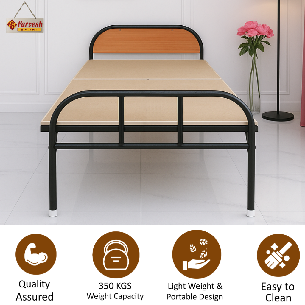 PS PARVESH SMART manufactures various types of high-quality folding beds using premium materials. Our plywood folding beds feature laminated headboards on both sides, offering smart space-saving solutions for living rooms and bedrooms.